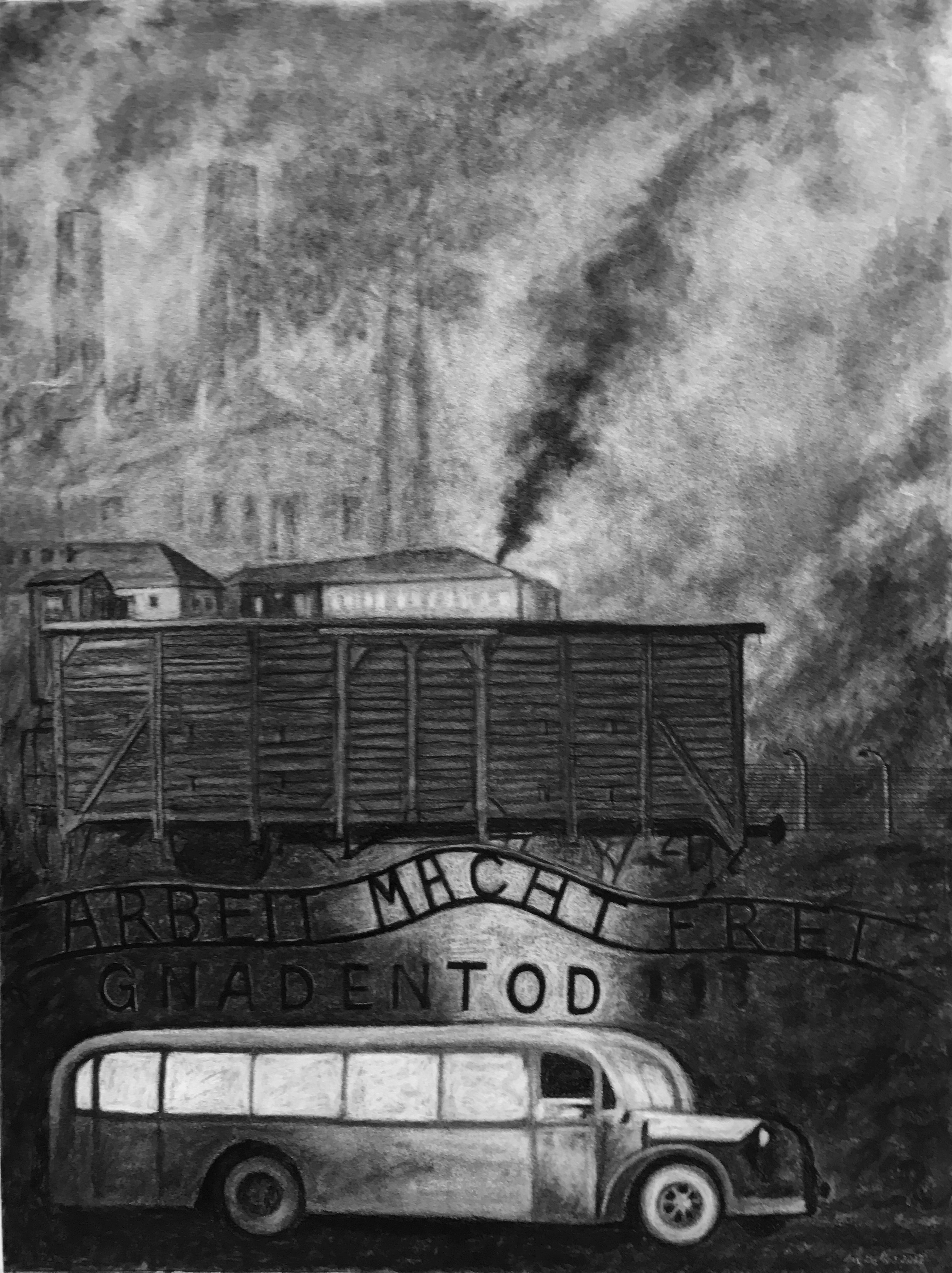 2017. My contribution to the exhibition is the charcoal drawing, “Gnadentod,”
