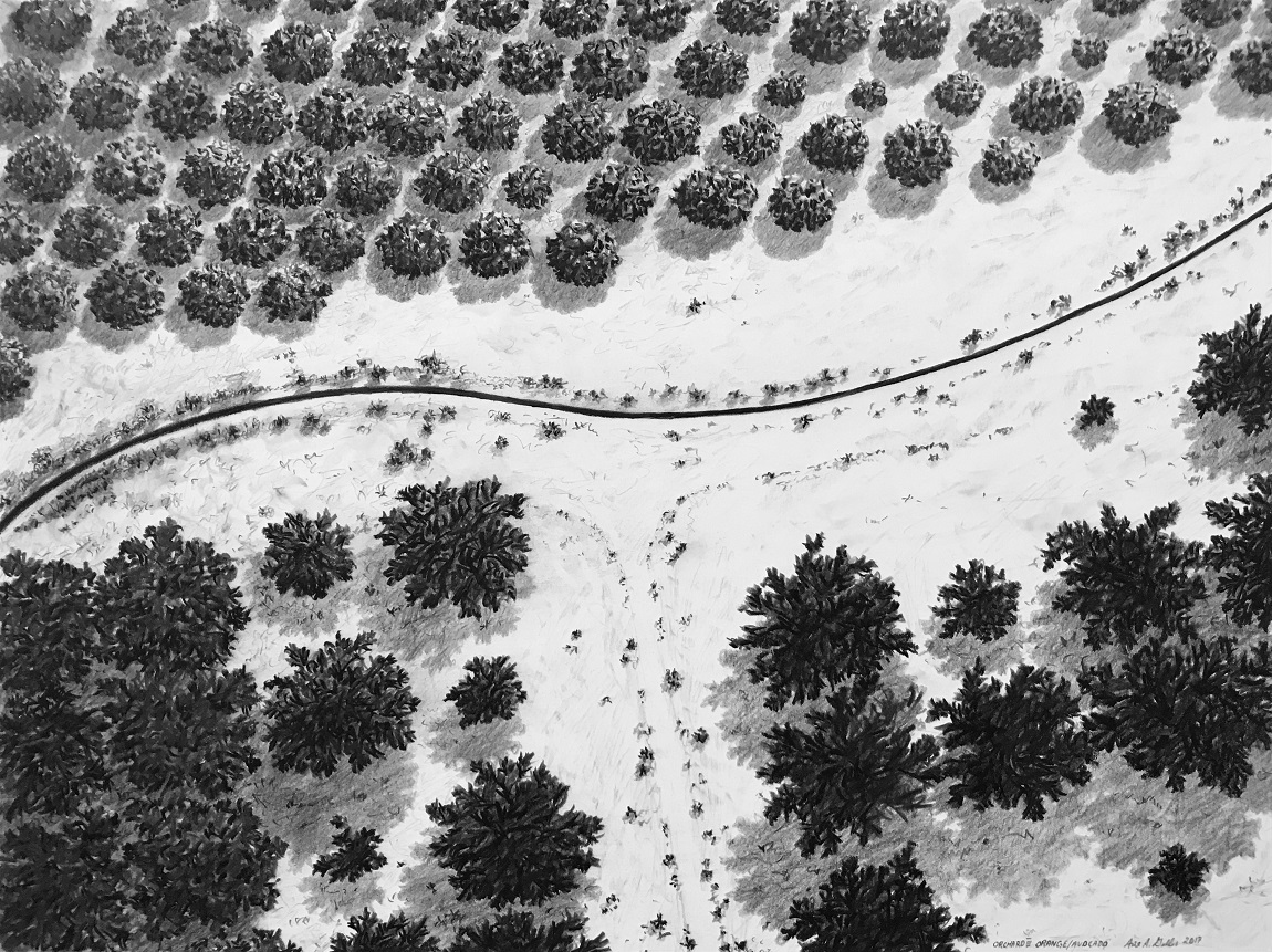 Arie A. Galles - ORCHARD V - AvocadoOrange - 12 x 16 - 2017 - Graphite on Strathmore Arie A. Galles - ORCHARD VI - Fire - 12 x 16 - 2017 - Graphite on Strathmore Arie A. Galles - ORCHARD VII - Fire - 12 x 16 - 2017 - Graphite on Strathmore Arie A. Galles - ORCHARD VIII - Replant 1 - 12 x 16 - 2018 - Graphite on Strathmore