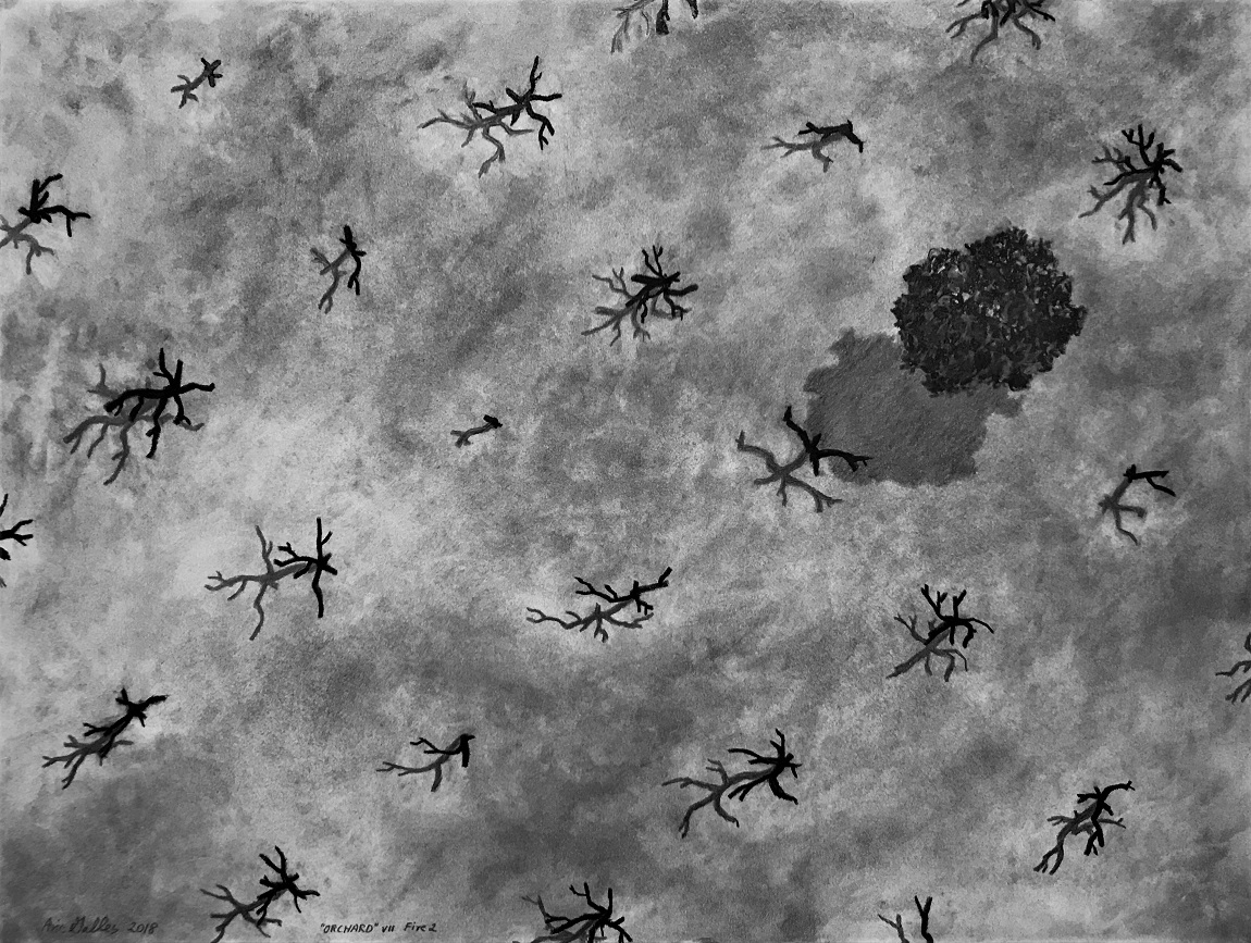 Arie A. Galles - ORCHARD VII - Fire - 12 x 16 - 2017 - Graphite on Strathmore