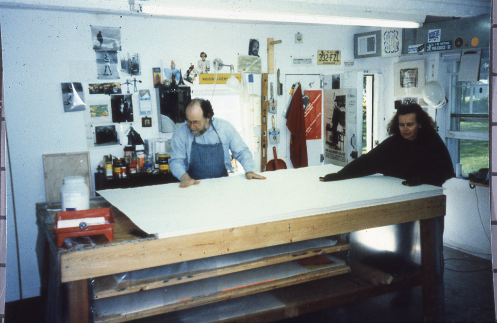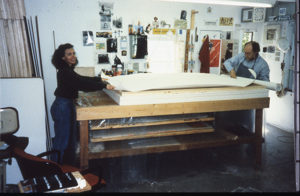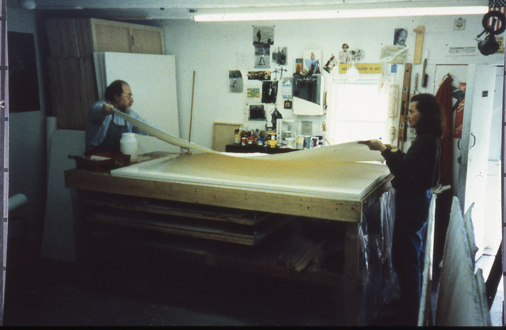 #8 “Fourteen Stations/Hey Yud Dalet” Arie A. Galles & Sara Nuss-Galles Removing wrinkles in the paper. Madison, NJ Spring 1994
