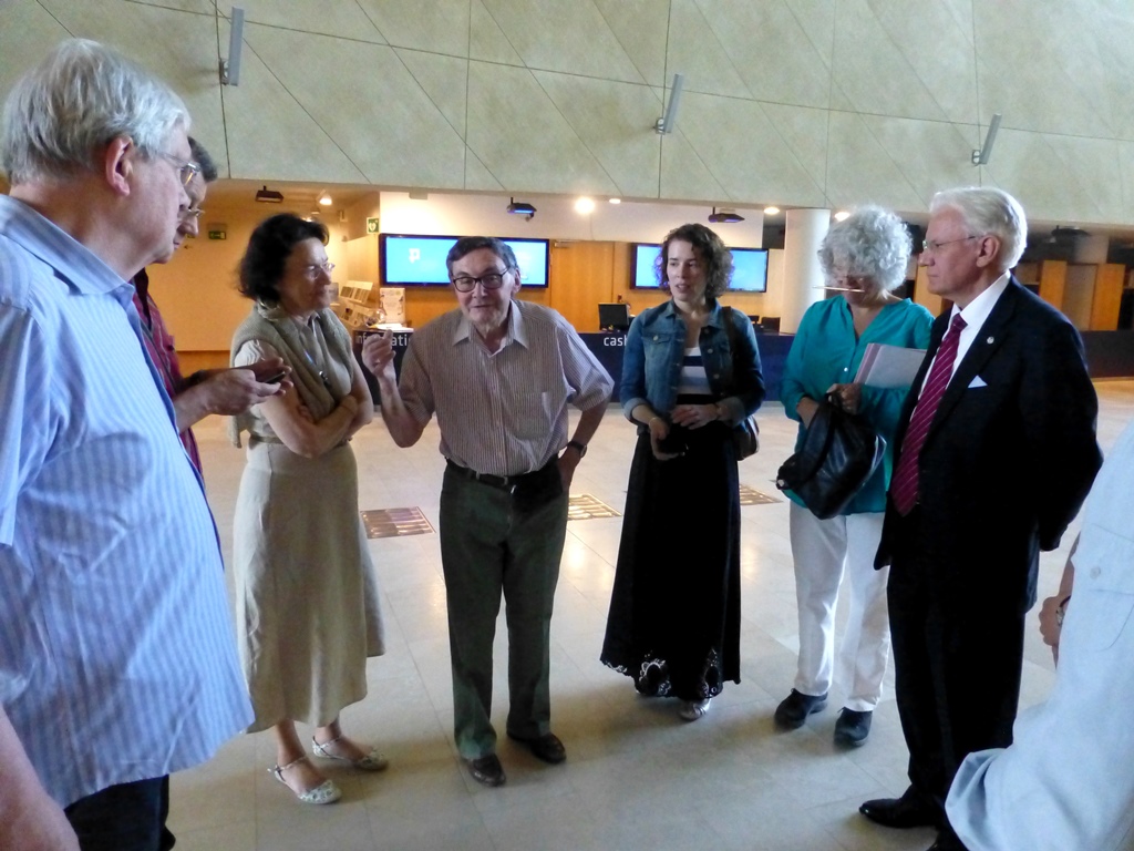 Antoni Starowieyski, Wojciech Fangor, Magdalena Fangor, Arie Galles, in rear: Krystyna Piotrowska and Ewa Andrzejewska after Arie’s lecture at the Szydlowski Gallery, Warsaw, Poland - 7/3/2014