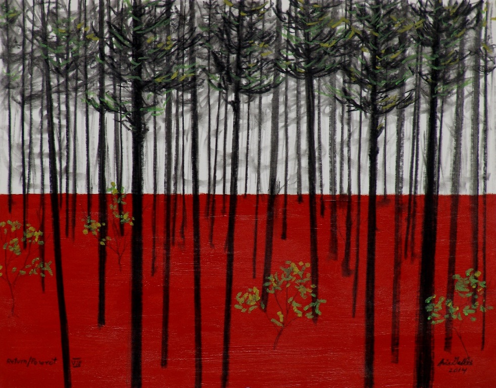 Return-Powrot I - 11in x 14in - 28cm x 35.5cm - 2014 - Conté and Acrylic